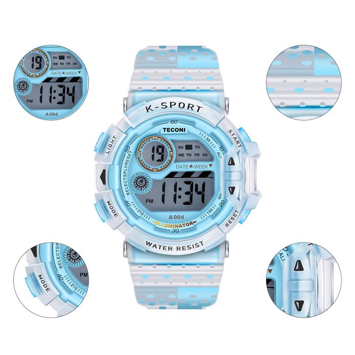 Tampil modis dan aktif bersama Teconi K-Sporty A004! Jam tangan digital transparan kekinian yang dirancang khusus untuk mendampingi gaya anak-anak usia 4 hingga 10 tahun. Dengan desain yang sporty dan warna-warna cerah, jam ini cocok untuk semua aktivitas si kecil, baik sehari-hari maupun bermain.