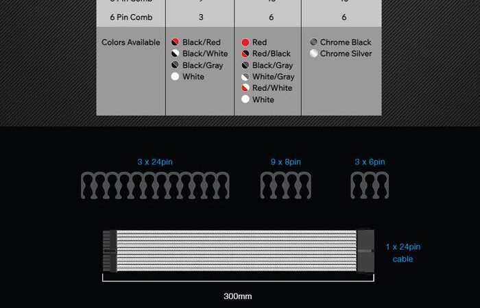 | Compatible up to 1600W+ PSU | Panjang: 300mm per kabel |