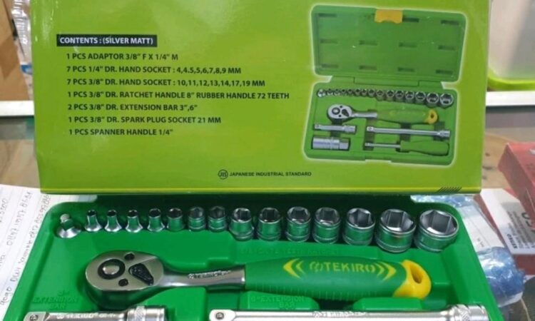 Tingkatkan efisiensi kerja Anda dengan Tekiro 21 Pcs Socket Wrench Set. Peralatan ini dirancang untuk memudahkan berbagai pekerjaan, mulai dari perbaikan kendaraan, perakitan furniture, hingga proyek DIY di rumah. Dilengkapi dengan komponen berkualitas tinggi yang mencakup dua set socket (ukuran 1/4″ dan 3/8″ DR), extension bar, ratchet handle dengan 72 teeth untuk sudut putar yang presisi, dan adaptor untuk fleksibilitas maksimal. Set ini juga termasuk socket khusus busi mobil. Semua peralatan disimpan rapi dalam box plastik yang kokoh untuk memudahkan penyimpanan dan mobilitas. Dapatkan alat yang andal dan tahan lama untuk koleksi perkakas Anda.