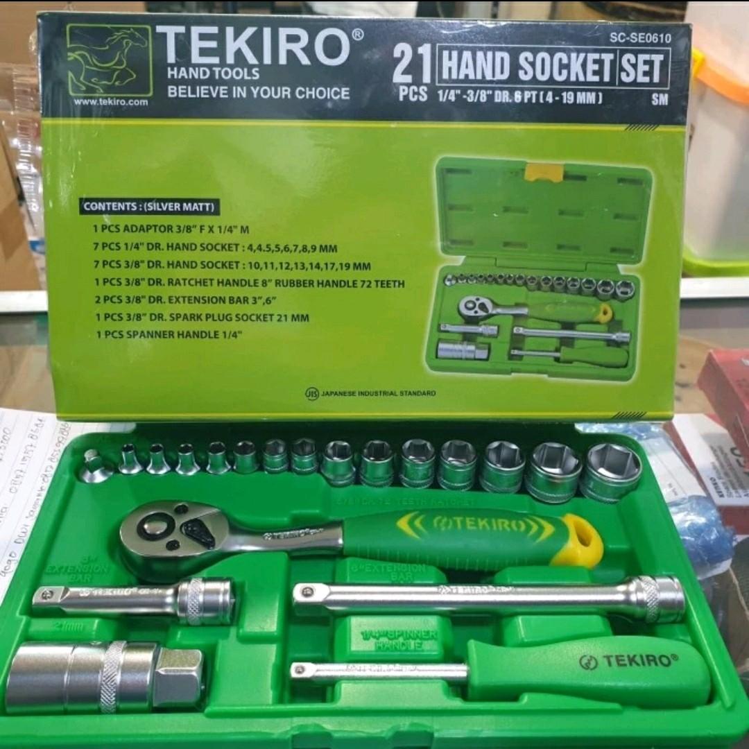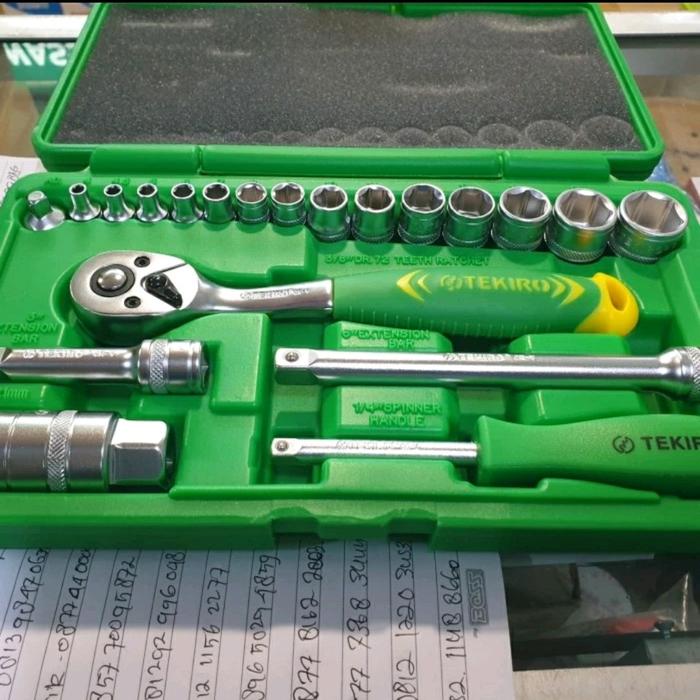 Tingkatkan efisiensi kerja Anda dengan Tekiro 21 Pcs Socket Wrench Set. Peralatan ini dirancang untuk memudahkan berbagai pekerjaan, mulai dari perbaikan kendaraan, perakitan furniture, hingga proyek DIY di rumah. Dilengkapi dengan komponen berkualitas tinggi yang mencakup dua set socket (ukuran 1/4″ dan 3/8″ DR), extension bar, ratchet handle dengan 72 teeth untuk sudut putar yang presisi, dan adaptor untuk fleksibilitas maksimal. Set ini juga termasuk socket khusus busi mobil. Semua peralatan disimpan rapi dalam box plastik yang kokoh untuk memudahkan penyimpanan dan mobilitas. Dapatkan alat yang andal dan tahan lama untuk koleksi perkakas Anda.