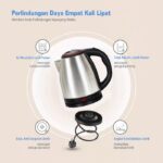 - Basis Rotasi 360°: Sistem yang memungkinkan teko diputar dan ditempatkan pada alasnya dengan sudut apa pun, memudahkan pengambilan air dan pencarian kabel.