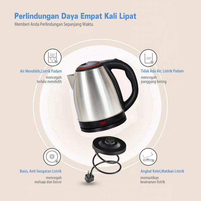 - Anti-kering (Dry Protection): Fitur keamanan yang secara otomatis mematikan pemanas jika ketel dinyalakan tanpa ada air di dalamnya, mencegah kerusakan akibat panas berlebih dan risiko kebakaran.