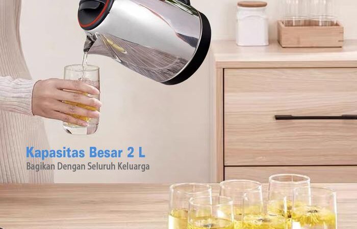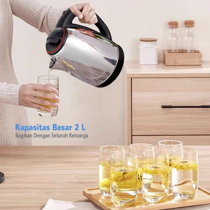 Hadirkan kemudahan dan efisiensi dalam menyajikan air panas untuk keluarga Anda setiap hari. Teko listrik ini dirancang dengan kapasitas besar 2 Liter, sangat ideal untuk memenuhi kebutuhan air panas minum, menyeduh teh, kopi, mi instan, atau kebutuhan masak lainnya tanpa harus mengisi ulang berkali-kali. Dilengkapi dengan teknologi pemanas cepat berdaya 1500W, air mendidih lebih cepat dan menghemat waktu Anda.