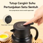 - Versi Tampilan Suhu: Model teko yang dilengkapi dengan display digital untuk memantau suhu cairan di dalamnya. Mengandung komponen elektronik yang tidak boleh terkena air mendidih atau suhu ekstrem.