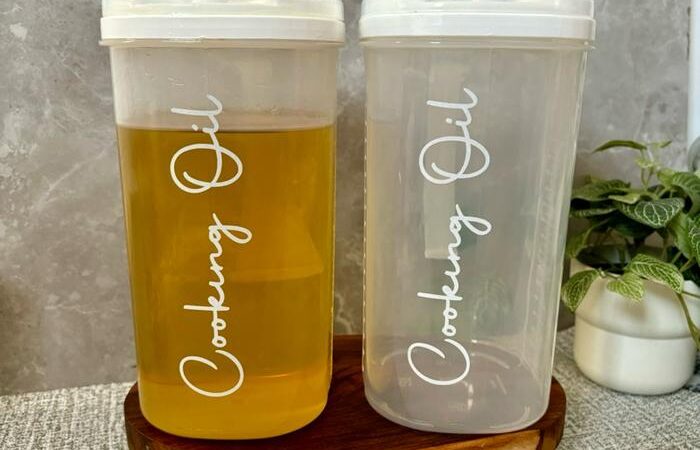 - Stiker Cutting: Jenis stiker yang tidak menggunakan kertas latar/backing. Desain stiker (dalam hal ini hanya tulisan “Cooking Oil”) langsung dapat ditempelkan, memberikan kesan profesional dan melekat rapi.