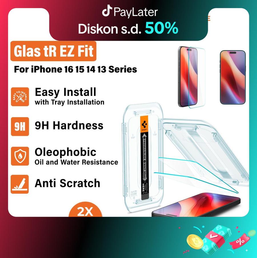 Lindungi layar iPhone Anda dengan Spigen Glas tR Ez Fit, tempered glass berkualitas tinggi dengan material 9H Hardness tahan gores dan lapisan Oleophobic Coating untuk perlindungan maksimal. Dilengkapi dengan tray pemasangan presisi, proses instalasi menjadi lebih mudah dan bebas gelembung. Pilih varian anti-spy untuk privasi ekstra atau clear untuk kejernihan tampilan.