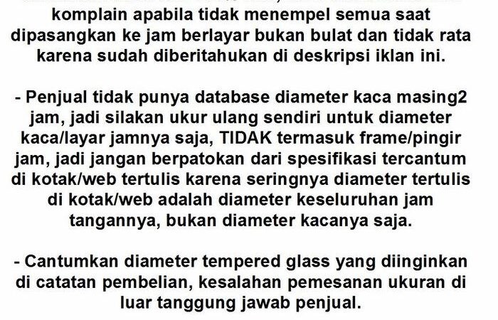 - Ukur sendiri diameter kaca/layar jam Anda (hanya bagian kacanya, tidak termasuk bingkai/bezel). Jangan mengandalkan diameter keseluruhan jam yang tercantum di spesifikasi produk atau kotaknya.