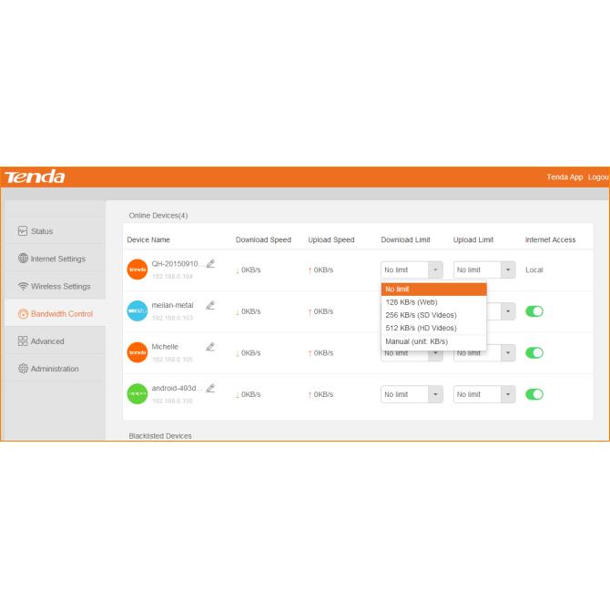 Keunggulan utama Tenda F3 adalah fitur Bandwidth Control Management eksklusif yang memungkinkan Anda membatasi kuota internet untuk setiap user secara individual. Sangat cocok untuk rental spot, kos-kosan, atau rumah dengan banyak perangkat.