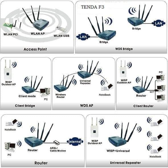 | Fungsi | Router, Extender, Access Point (AP), Repeater, Wireless Adapter |