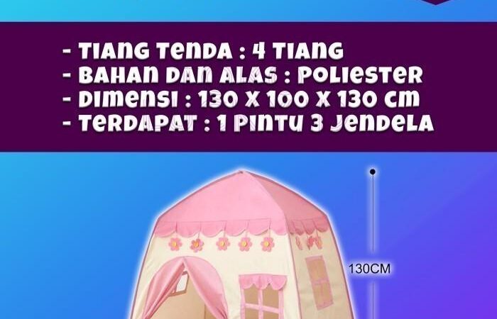 Berikut adalah spesifikasi lengkap dan fitur produk tenda mainan anak dengan desain istana princess yang menarik:
