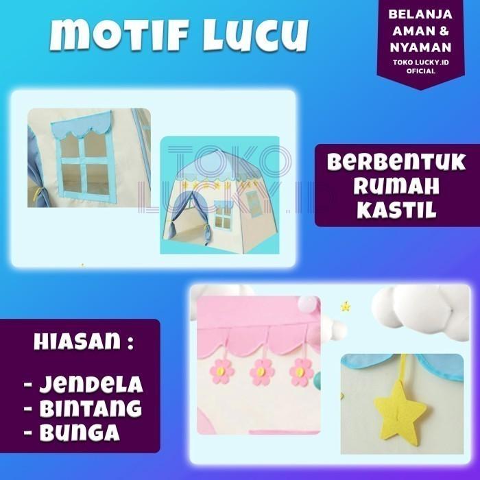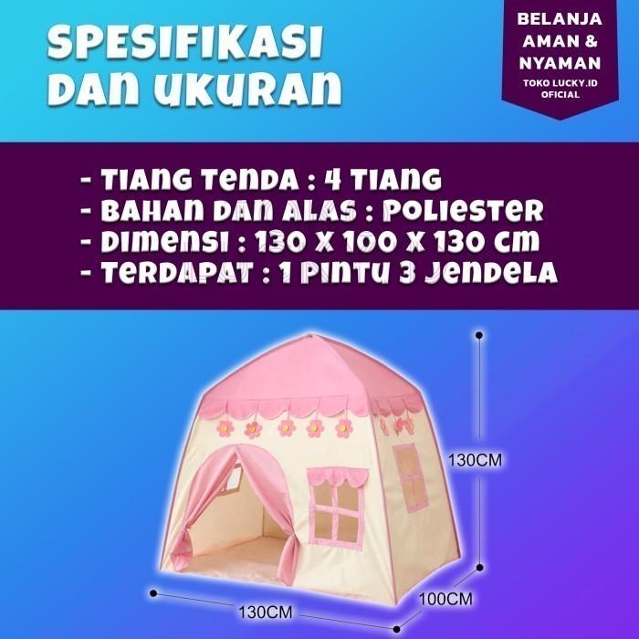 Berikut adalah spesifikasi lengkap dan fitur produk tenda mainan anak dengan desain istana princess yang menarik: