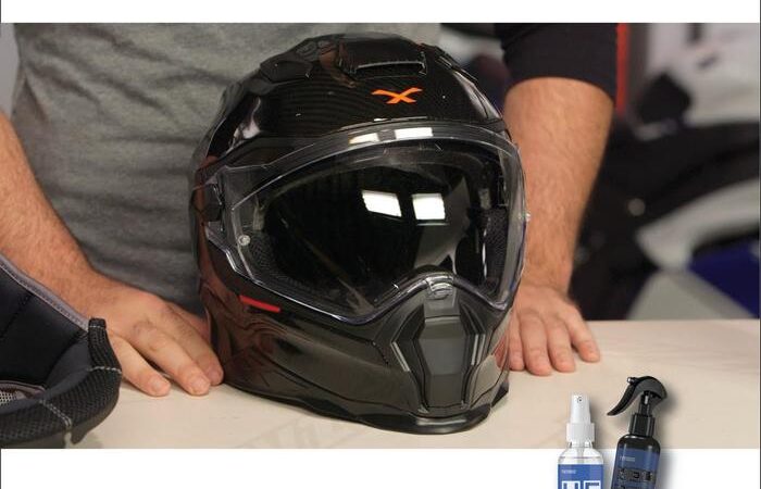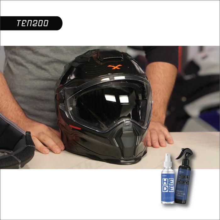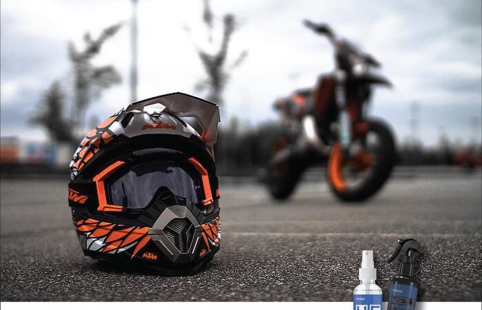 Semprotkan secara merata ke bagian dalam helm. Ulangi penyemprotan untuk hasil yang lebih optimal.