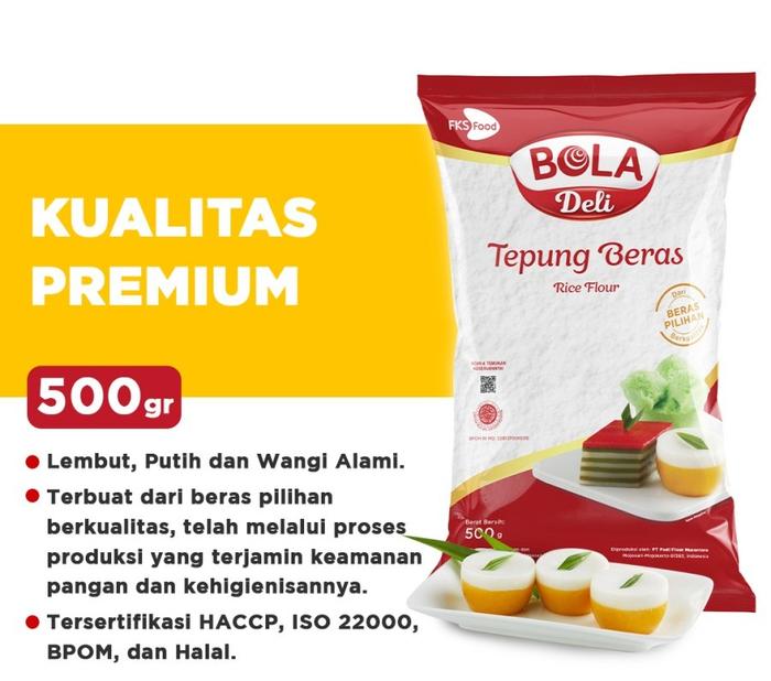 Dengan tekstur yang halus dan kualitas yang sangat konsisten dari batch ke batch, Tepung Beras Bola Deli menjamin hasil olahan yang sempurna. Kemasan yang terdiri dari plastik berkualitas dilapisi karton box membuatnya tetap rapi, kedap udara, dan mencegah tepung berhamburan, sehingga selalu fresh sampai ke dapur Anda.