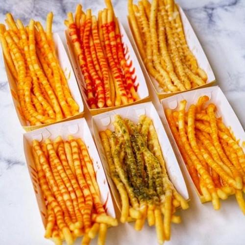 - Long Potato: Istilah untuk menyebut potongan kentang yang dipotong memanjang (seperti stik), biasanya digoreng hingga renyah. Produk ini dirancang khusus untuk membuat hidangan ini.
