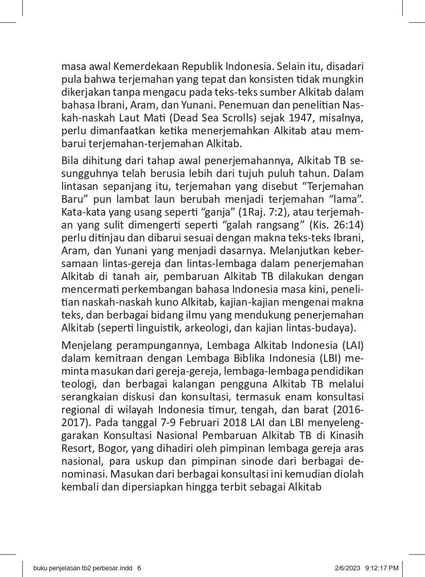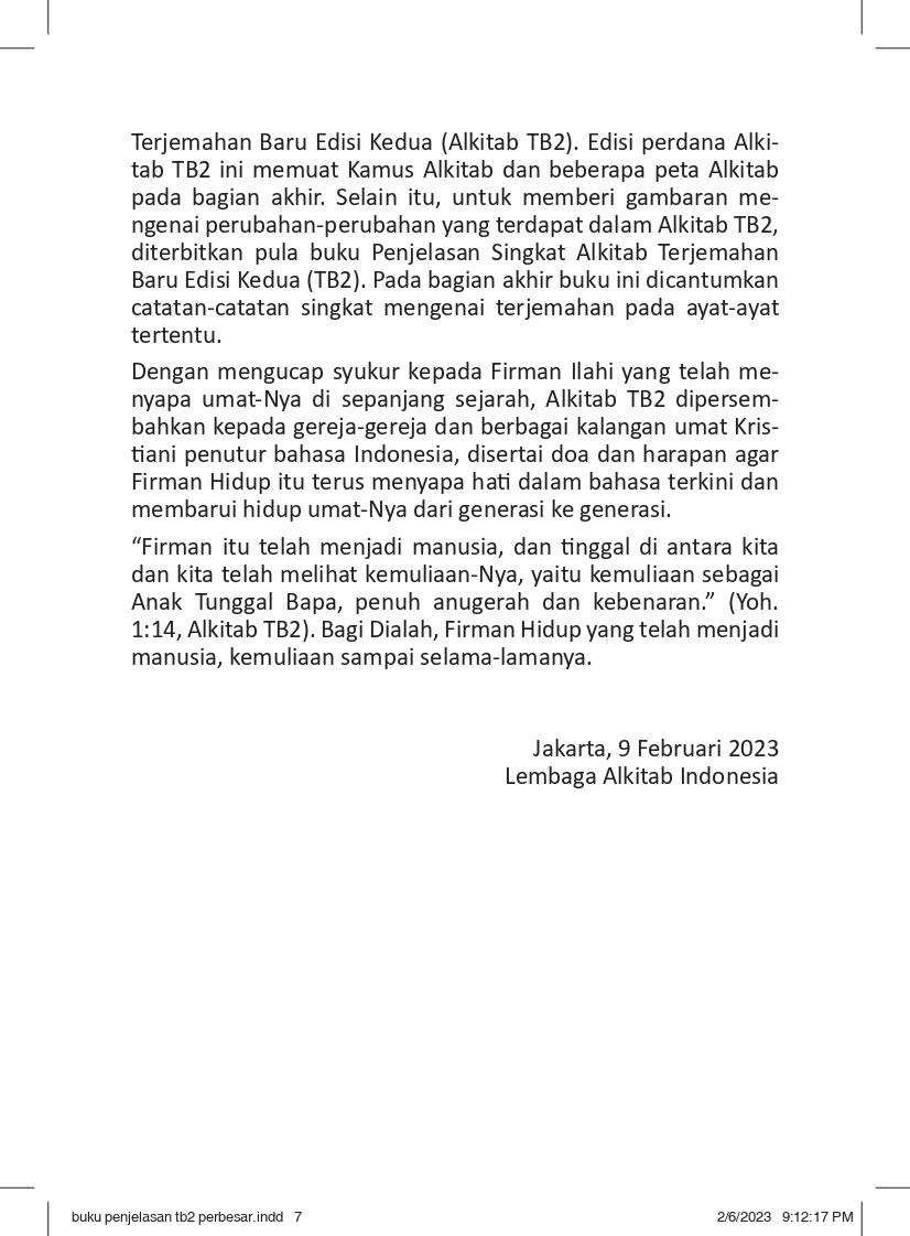 | Penerbit | Lembaga Alkitab Indonesia (LAI) |