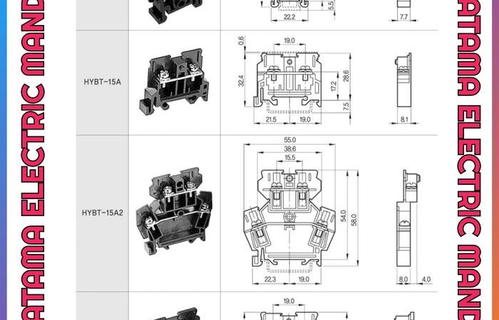 - Terminal Block 2 Tingkat (2 Stack): Sebuah blok terminal yang memiliki dua tingkat penyambungan dalam satu unit. Ini memungkinkan dua kabel berbeda disambungkan secara vertikal pada titik yang sama, menghemat ruang secara signifikan dibandingkan menggunakan dua blok terminal terpisah.
