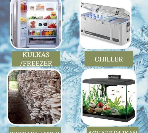| Tempat Penggunaan | Kulkas, Freezer, Icebox, Gudang, Lemari Penyimpanan, Aquarium, Kolam Ikan, Budidaya Jamur/Walet, Hidroponik, Greenhouse, Ruang Tunggu |