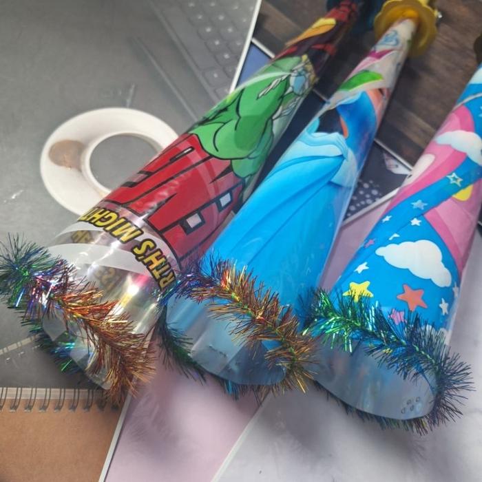 Nikmati suara yang kencang dan meriah dengan terompet kami yang terbuat dari bahan plastik tebal berkualitas. Ujungnya dilengkapi corong bergambar karakter yang tidak hanya mempercantik tampilan tetapi juga mengoptimalkan volume suara saat ditiup. Setiap pesanan dikemas dengan sangat aman menggunakan extra packing untuk melindungi produk selama pengiriman.