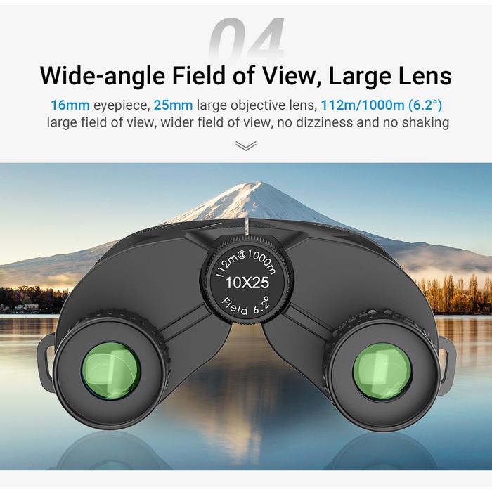 - Wide Angle: Menunjukkan bahwa teropong memiliki bidang pandang (field of view) yang lebih lebar dari rata-rata, memungkinkan Anda melihat area yang lebih luas tanpa harus banyak menggerakkan teropong.