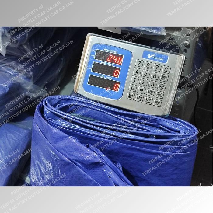 - Ukuran akhir terpal akan menyusut ±0,2 meter per sisi akibat proses lipatan mesin pada pinggiran.