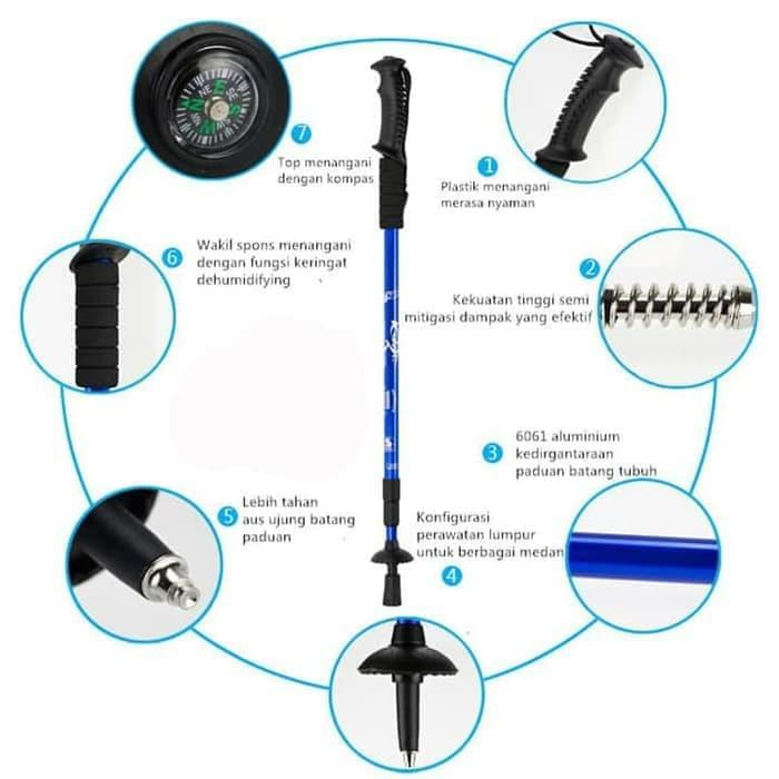 | Sistem Adjustable | 3-Section Adjustable dengan pengunci external lever yang cepat dan aman, memudahkan penyesuaian panjang di medan tanjakan atau turunan. |