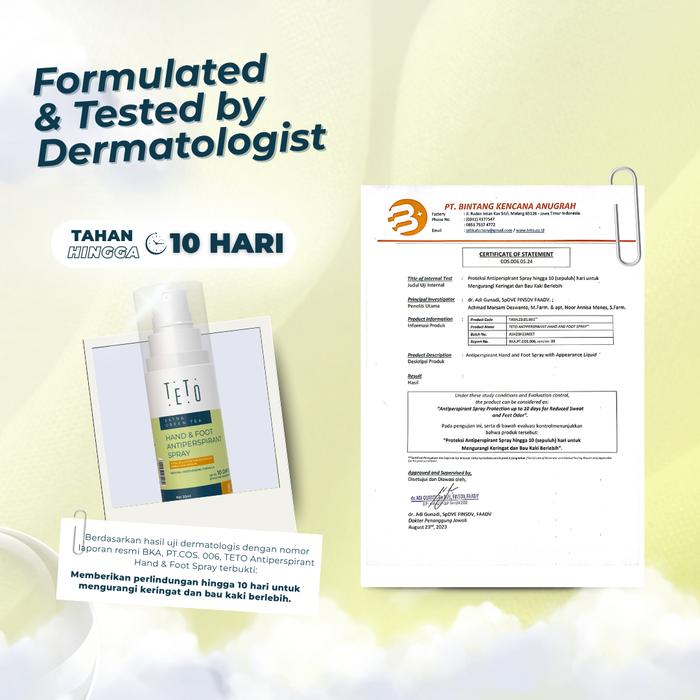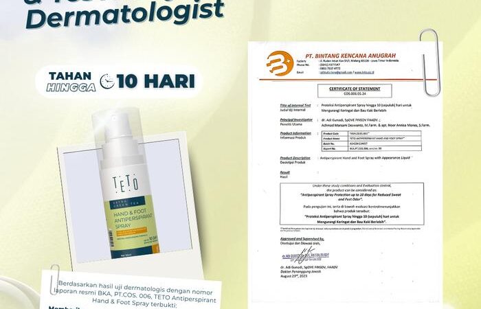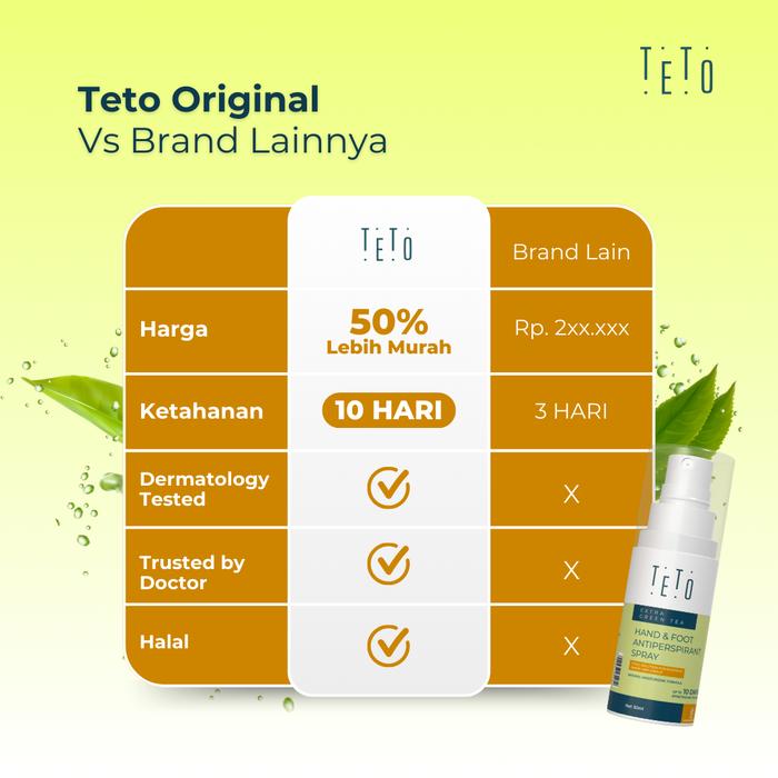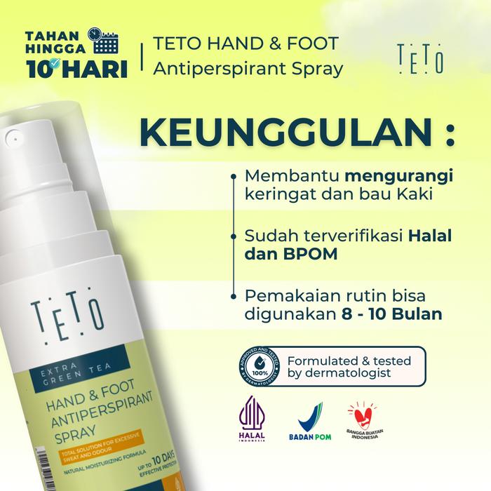 - Antiperspirant: Berbeda dengan deodoran yang hanya menutupi bau, antiperspirant bekerja secara aktif untuk mengurangi produksi keringat berlebih. Formula TETO mengandung zat aktif yang membantu mengontrol kelenjar keringat.