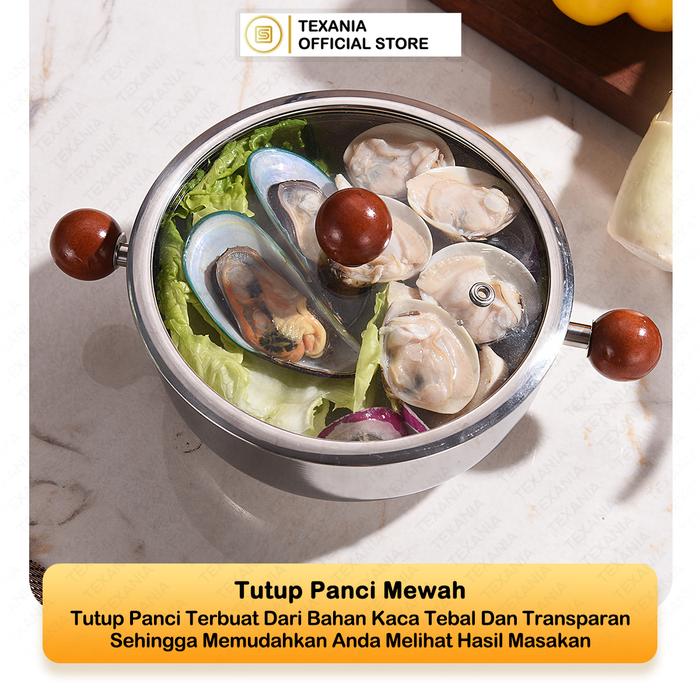 Desainnya yang elegan dilengkapi dengan gagang kayu (wooden handle) yang lembut dan kuat, memberikan cengkeraman yang nyaman sekaligus tahan terhadap suhu tinggi sehingga tetap aman di tangan. Setiap set dilengkapi dengan tutup kaca tembus pandang yang memungkinkan Anda memantau kondisi makanan tanpa harus terus membukanya. Cocok menjadi perlengkapan dapur (kitchenware) penting untuk memasak sehari-hari maupun saat menerima tamu.