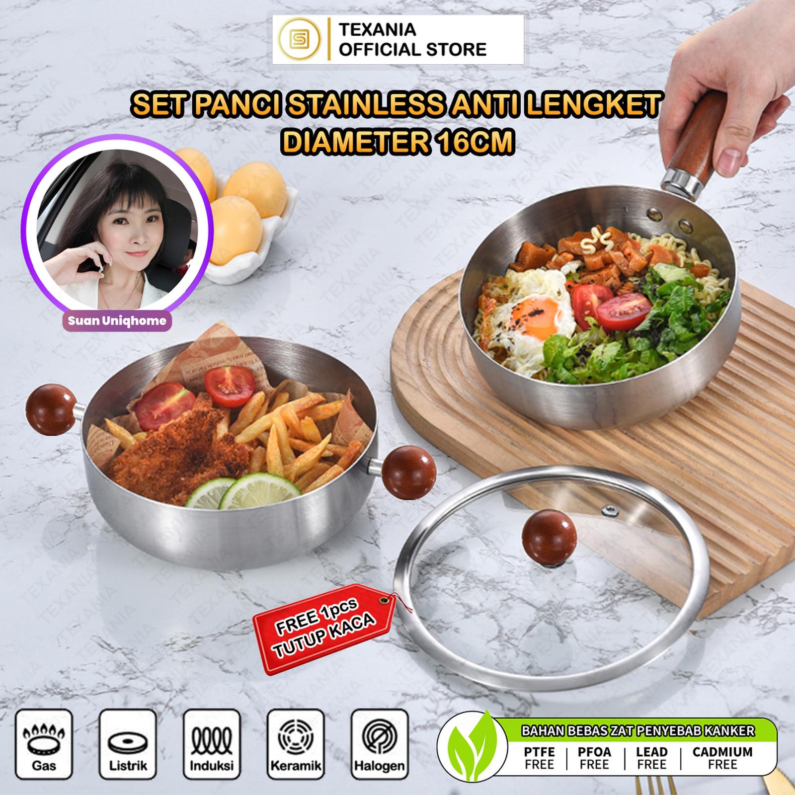 Tingkatkan pengalaman memasak Anda dengan set panci premium dari Texania. Dirancang untuk memberikan performa terbaik, set ini terdiri dari satu panci dan satu saucepan dengan diameter 16 cm yang ideal untuk memanaskan sayuran, membuat saus, mengukus, atau memasak mi instan. Material stainless steel berkualitas tinggi menjamin distribusi panas yang merata, anti lengket untuk memudahkan proses memasak dan membersihkan, serta tahan karat untuk investasi jangka panjang.