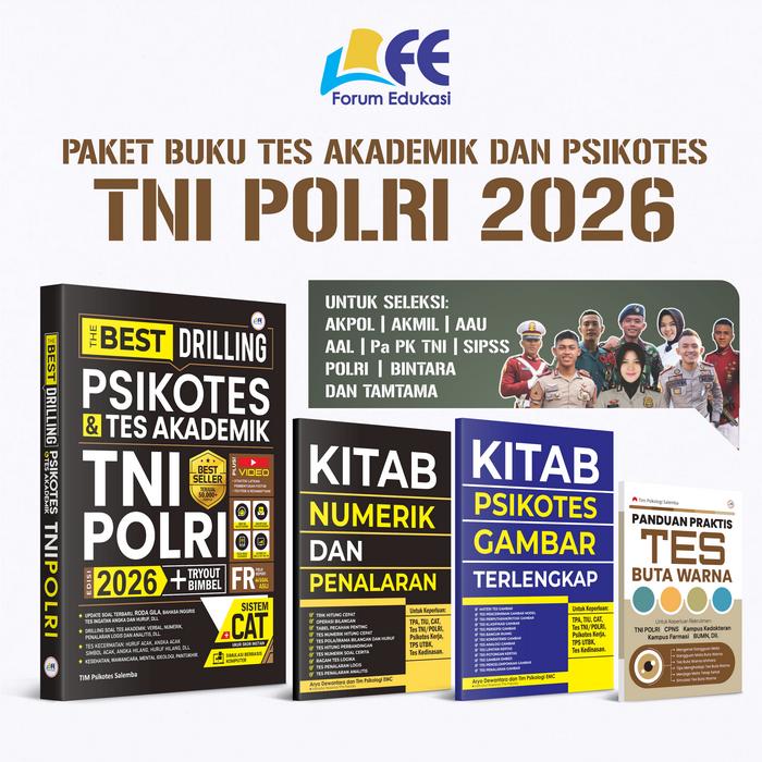 Persiapkan diri Anda menghadapi seleksi TNI/POLRI 2026 dengan buku panduan terlengkap! Buku ini dirancang khusus untuk membantu Anda menguasai semua jenis tes, mulai dari psikotes hingga akademik, dengan metode drilling intensif.