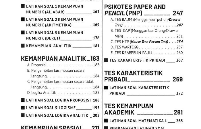 | Psikotes (TPA, TBS, PAPS) | Paket soal lengkap mencakup kemampuan verbal, numerik, analitik, spasial, serta tes gambar (Wartegg, DAP, dll). |