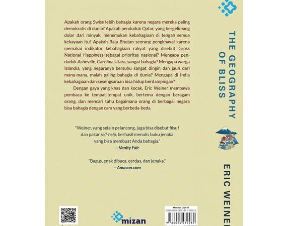 Dengan gaya bercerita yang jenaka, cerdas, dan menghibur, Weiner mengajak kita menyelami kehidupan di India, Bhutan, Amerika, dan banyak negara lainnya. Buku ini adalah panduan unik yang memadukan jurnalisme, humor, dan ilmu psikologi untuk menjawab pertanyaan tertua umat manusia: apa yang membuat hidup bahagia? Dapatkan segera dan mulailah petualangan Anda menemukan sumber kebahagiaan.