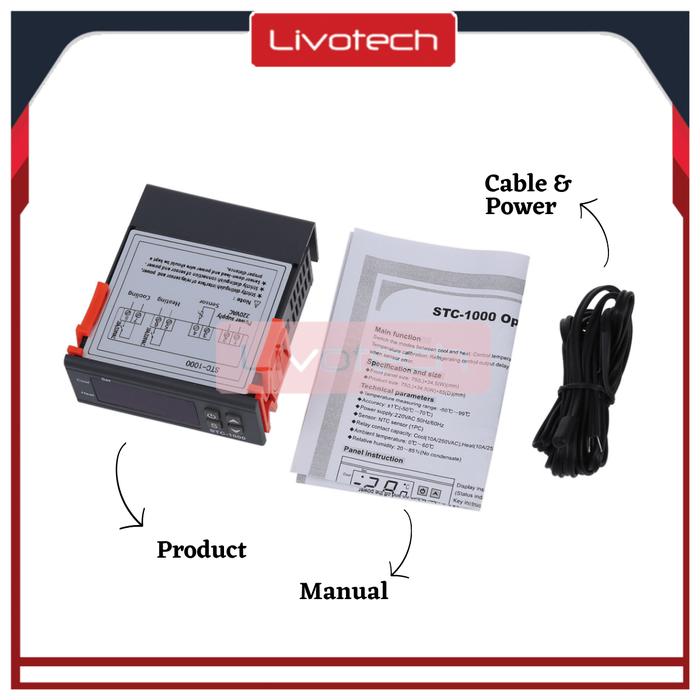 Paket penjualan sudah termasuk 1 unit controller, 1 sensor probe suhu, buku manual panduan, dan kemasan box.