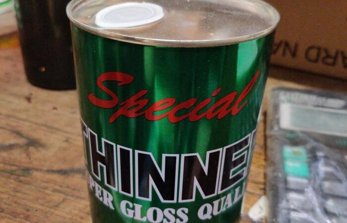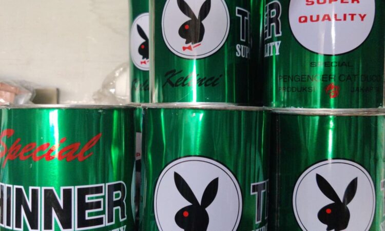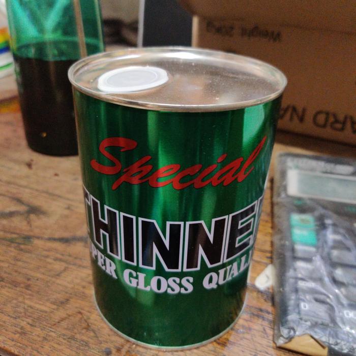 - Thinner / Pengencer Cat Minyak: Cairan pelarut yang digunakan untuk mengencerkan cat berbasis minyak (oil based) atau melarutkan vernis. Fungsinya adalah untuk menyesuaikan kekentalan cat agar lebih mudah diaplikasikan dengan kuas atau spray, serta untuk membersihkan peralatan lukis.