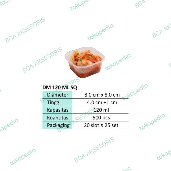 Tampilkan sajian Anda dengan kemasan terbaik. Thinwall DM 120 ML Square Mini adalah wadah makanan persegi transparan yang dirancang untuk kesempurnaan. Dengan kapasitas 120 ml, wadah ini ideal untuk berbagai keperluan, mulai dari packing saus, sambal, salad, dessert, pudding, hingga sebagai tempat sample produk dan kotak hadiah.