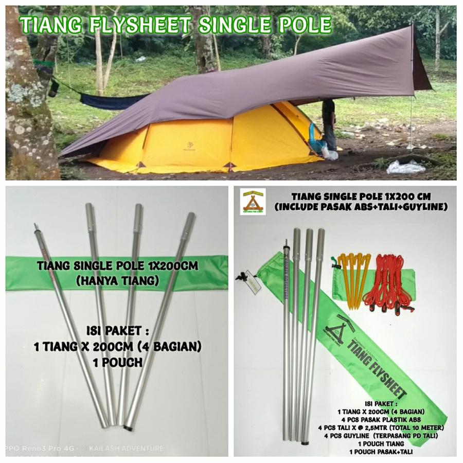 - Single Pole: Tiang tunggal penyangga flysheet/tenda.