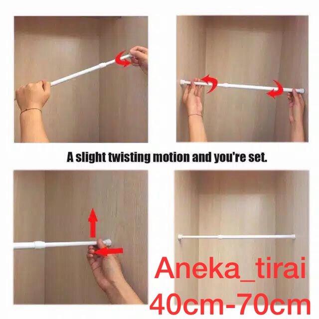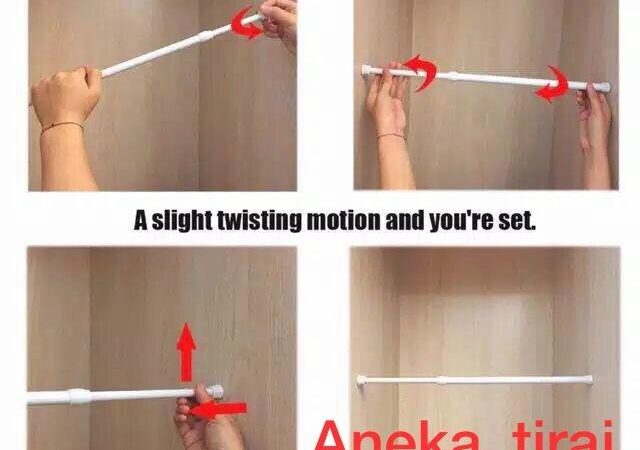 Cara pemasangan sangat mudah dan cepat! Cukup putar (twist) untuk memanjangkan tiang, lalu rekatkan di antara dua dinding. Desainnya yang fleksibel akan menyesuaikan lebar ruang dan mencengkeram dengan kuat tanpa merusak dinding. Sangat cocok untuk berbagai kebutuhan: kamar tidur, kamar mandi, pintu, atau bahkan jendela dapur.