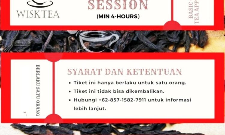 | Included: | – Materi kelas – 12 sampel teh dari 6 kategori – Teapot eksklusif + 2 cangkir – Sesi 4 jam |