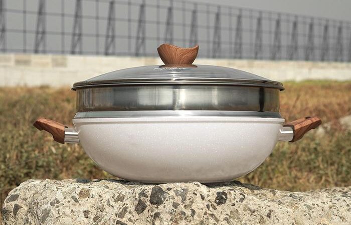 - Multilayer: Lapisan dasar panci yang terdiri dari beberapa lapisan logam (biasanya aluminium yang cepat panas diapit oleh baja anti karat). Teknologi ini memastikan panas didistribusikan secara cepat dan merata ke seluruh permukaan wajan, sehingga makanan tidak gosong di satu titik.