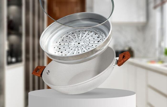 - Steamer: Alat atau bagian dari panci yang berfungsi untuk mengukus makanan. Biasanya berbentuk keranjang berlubang yang memungkinkan uap panas mendistribusikan panas secara merata untuk mematangkan makanan.