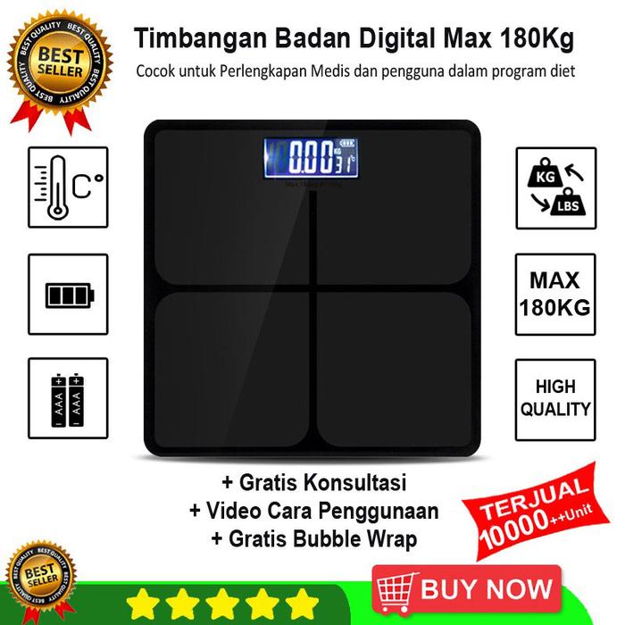 | Kapasitas Maksimal | 180 kg, cocok untuk pemantauan berat badan harian. |