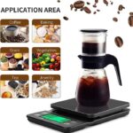 Dengan kapasitas maksimal 5kg, alat ini tidak hanya untuk menimbang biji kopi tetapi juga cocok untuk bahan kue dan kebutuhan dapur lainnya. Akurasi hingga 0.1 gram menjamin presisi dalam setiap resep. Fitur auto-off setelah 5 menit menghemat daya baterai.