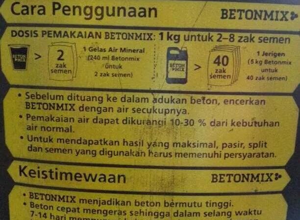 | Aplikasi | Ideal untuk proyek konstruksi, perbaikan rumah, pembuatan fondasi, jalan, lantai, dan berbagai kebutuhan beton lainnya. |