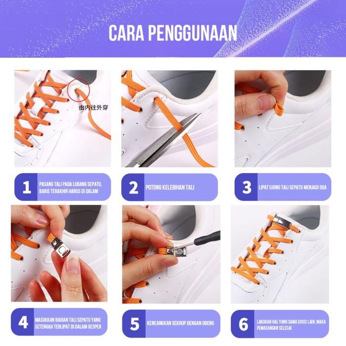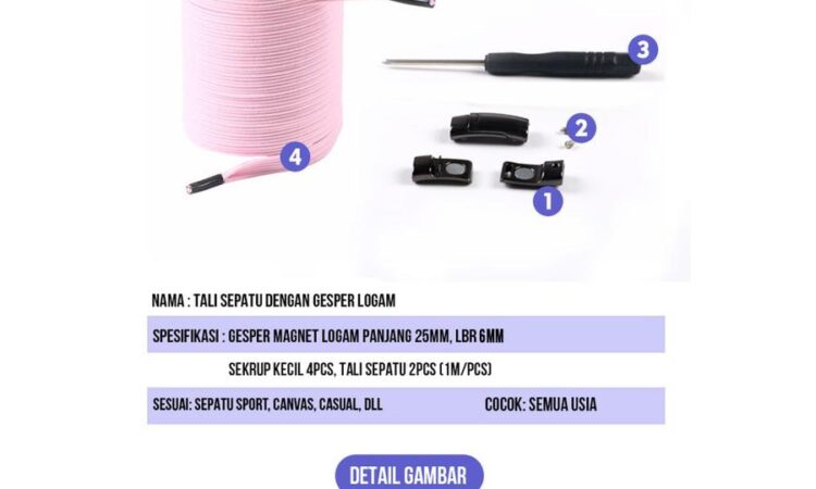 - Paket: 2 gesper logam, 4 sekrup kecil, 1 obeng, 2 tali sepatu.
