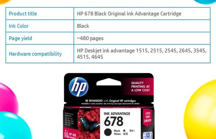 | Tahan Lama dan Awet | Tipe: Tinta Original dari Hewlett-Packard (HP) |