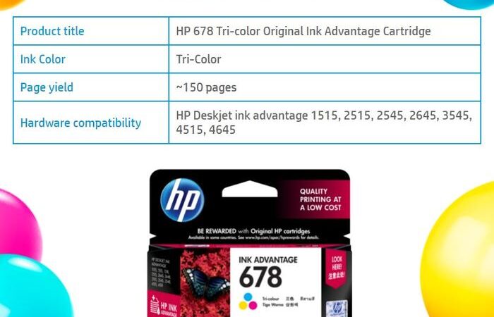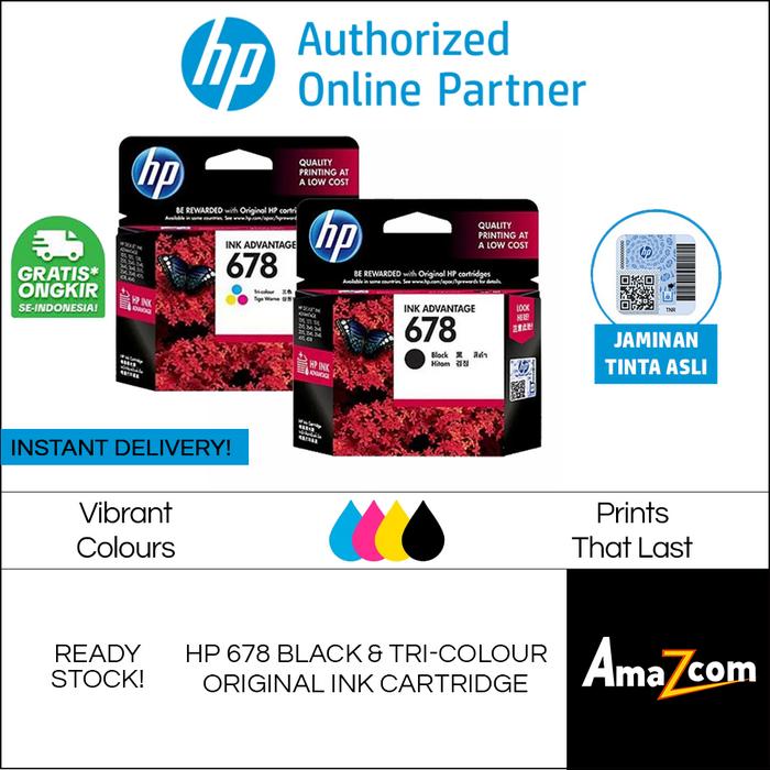 | Kualitas Cetak Profesional | Isi Paket: 1 Cartridge Hitam (CZ107AA) & 1 Cartridge Tri-color (CZ108AA) |