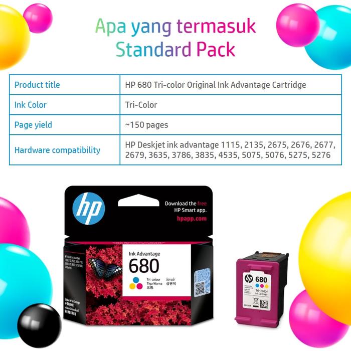 Dapatkan kualitas cetak warna yang tajam, hidup, dan konsisten setiap saat dengan Tinta HP 680 Tri-Color Original. Tinta ini dirancang khusus oleh HP untuk memastikan performa printer yang optimal dan hasil yang bebas dari noda atau penyumbatan. Cocok untuk segala kebutuhan pencetakan, mulai dari dokumen penting, tugas sekolah, hingga foto berwarna yang memukau.