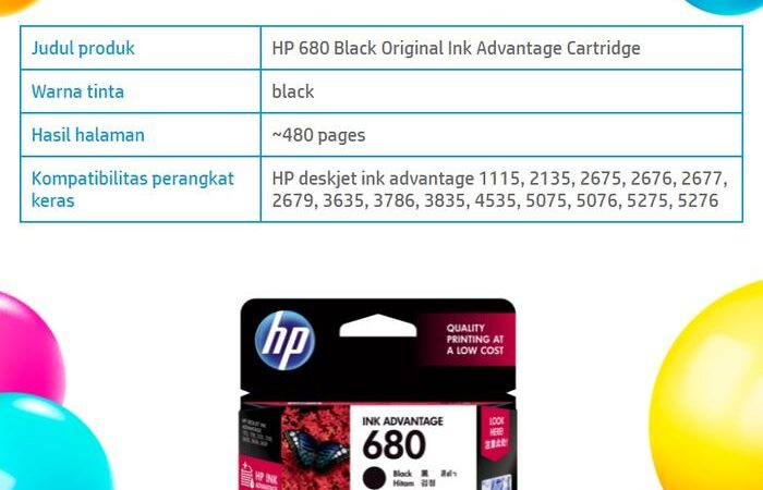 | Kompatibilitas | HP DeskJet 1110, 1115, 2135, ENVY 4520, OfficeJet 4650 |