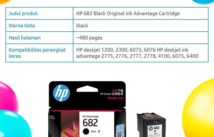 | Original 682 Color | 1 Tri-Color | 150 halaman | 0.03 kg | 3YM76AA |