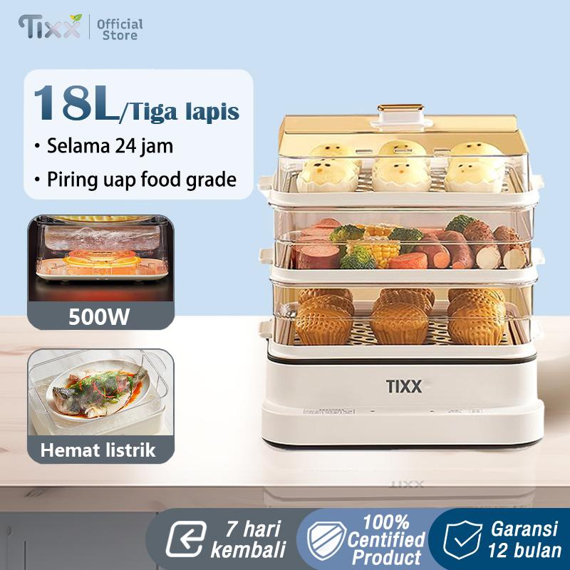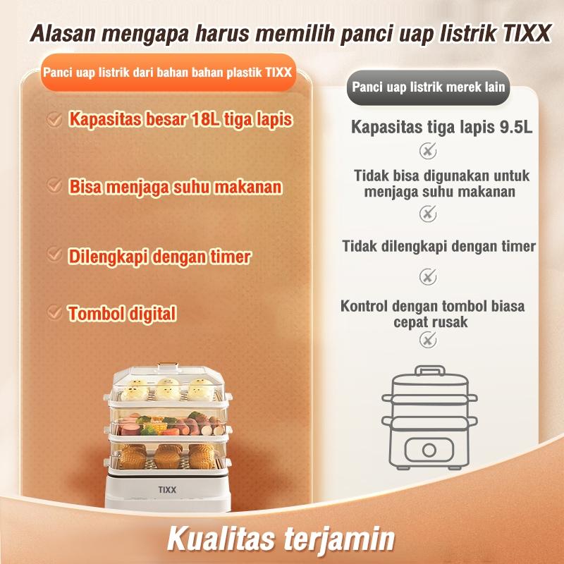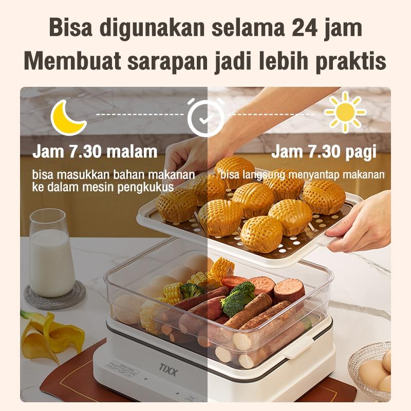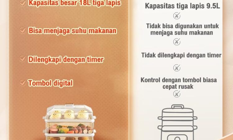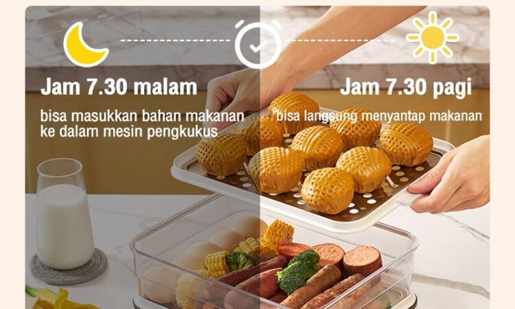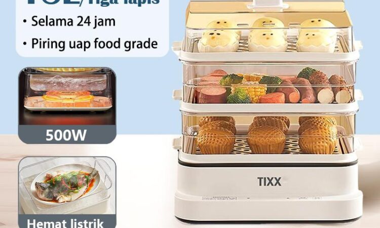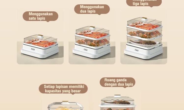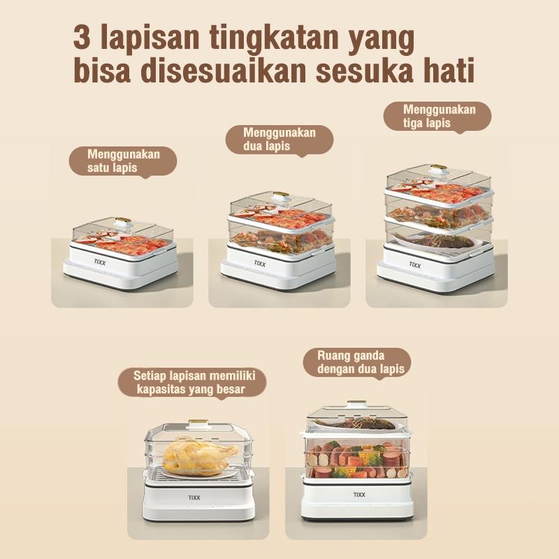 • Steamer 3 lapis memungkinkan memasak berbagai hidangan sekaligus (nasi, sayuran, daging).