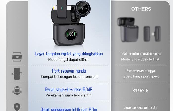 | Transmisi Jarak Jauh | Teknologi nirkabel 2,4GHz dengan latensi ultra-rendah (0,009 detik) dan jangkauan hingga 80 meter. Penerimaan suara 360° omni-directional untuk kualitas audio jernih. Kompatibel dengan iOS, Android, iPad, dan perangkat rekam lainnya. |